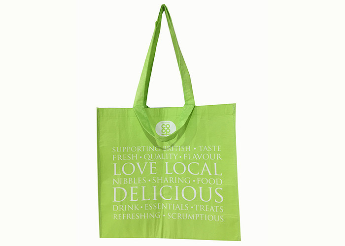Gros sacs d'épicerie non tissés en RPET stratifiés avec poignées longues et courtes en feutre |
